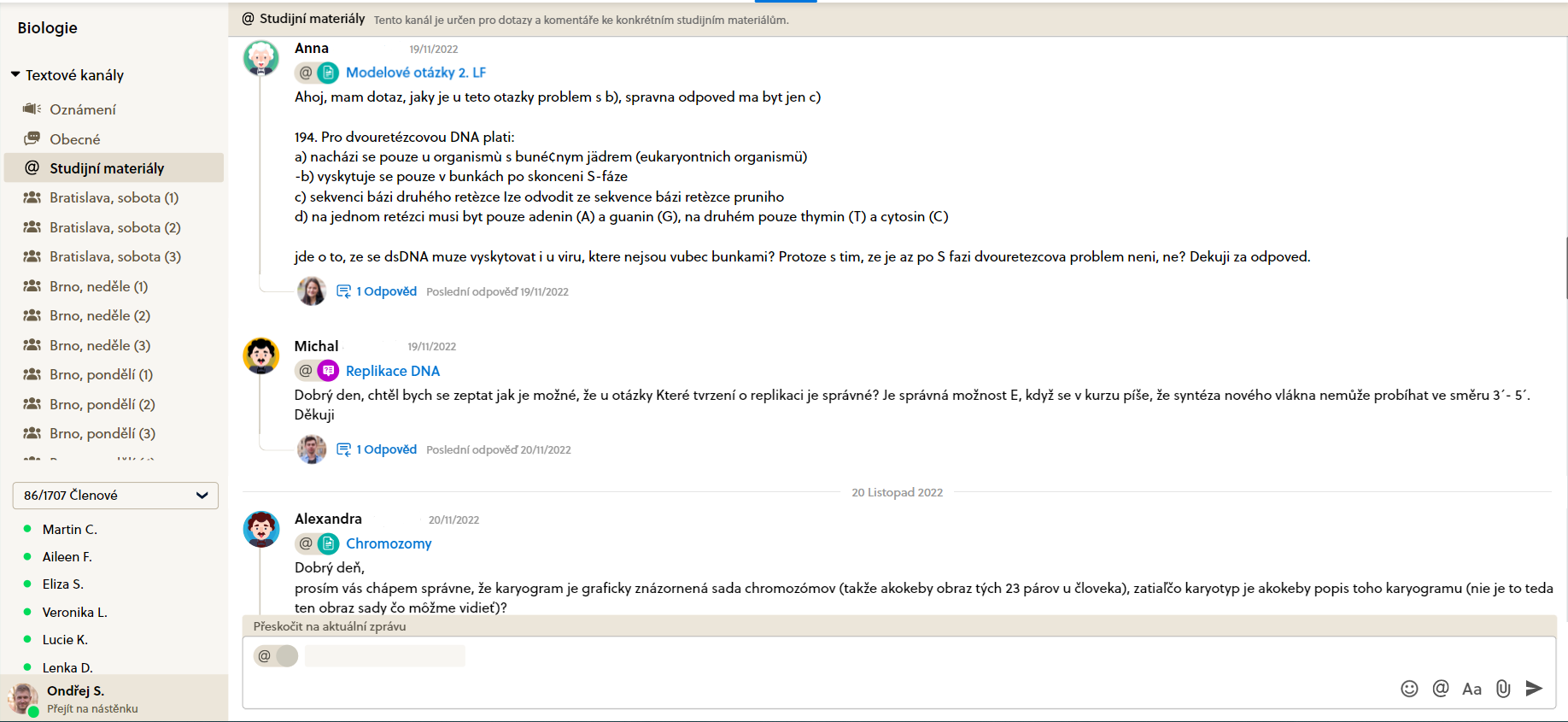 V rámci kurzu je možné konzultovat nejasné příklady s lektory v uzavřeném diskuzním fóru.